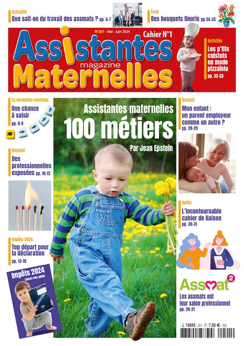 Retrouvez aussi dans ce magazine : comment accueillir quand le parent employeur n’est autre que votre fils ou votre fille ? Faciliter la communication et son organisation avec un cahier de liaison ; et enfin, quelques activités pratiques pour bricoler ou s’inspirer…